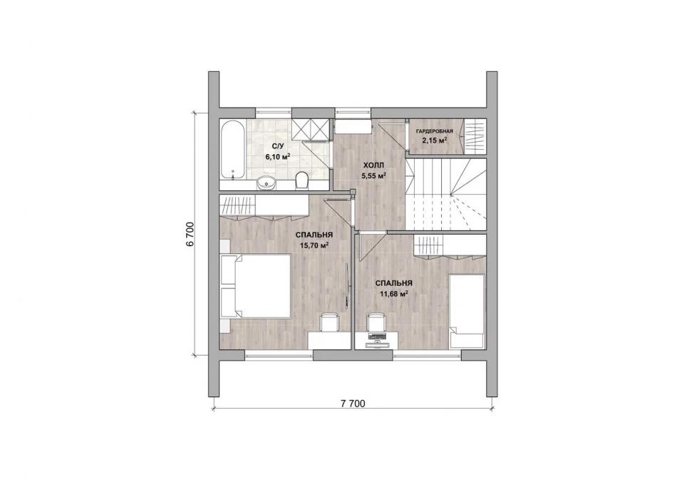 - Габаритные размеры дома 7,7 м х 6,7 м