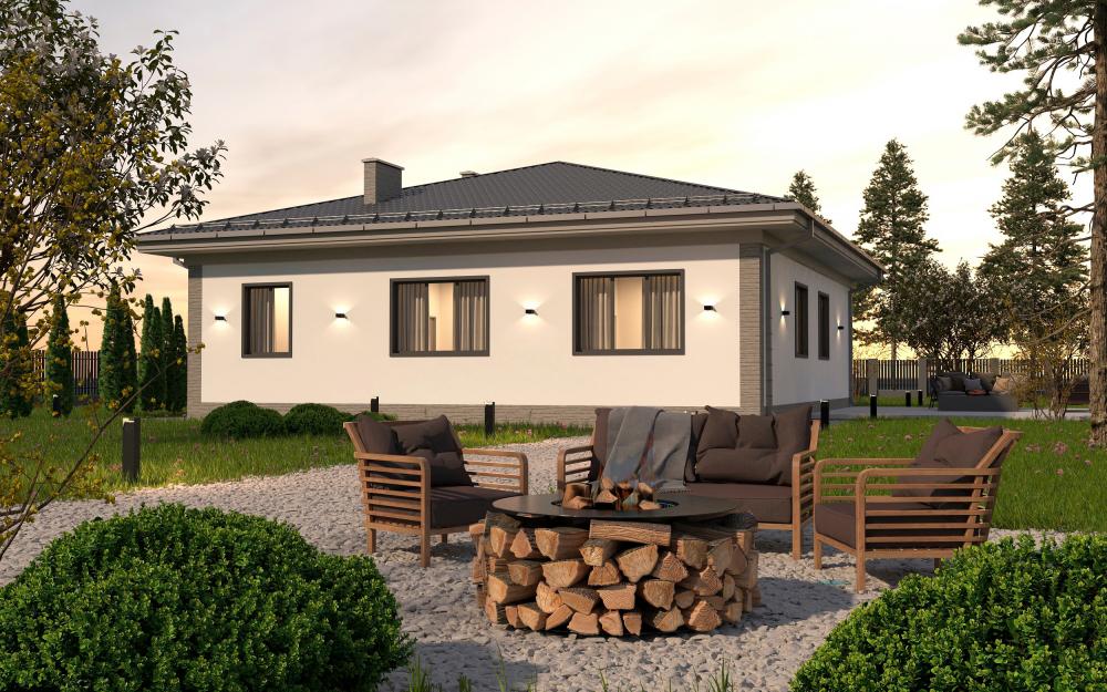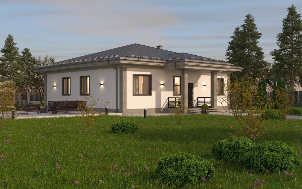 Представляем проект солидного одноэтажного дома для семьи из 4-8 человек.