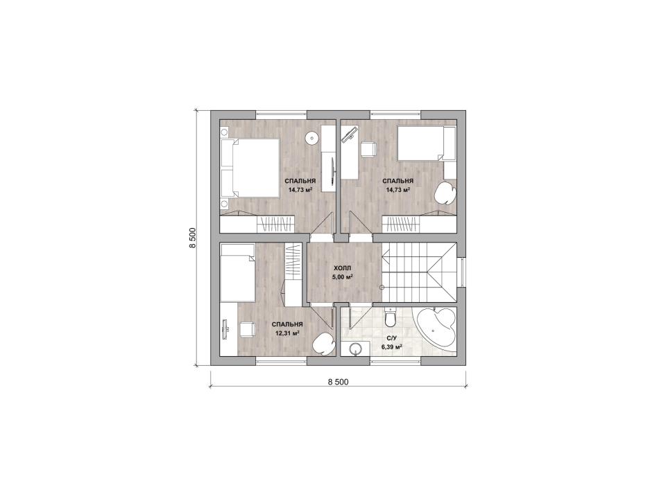 - Габаритные размеры дома 8,5 м х 8,5 м