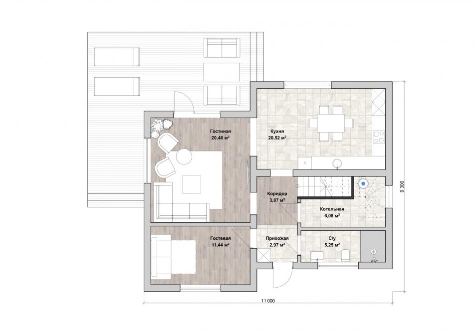 - Габаритные размеры дома 9,3 м х 11 м