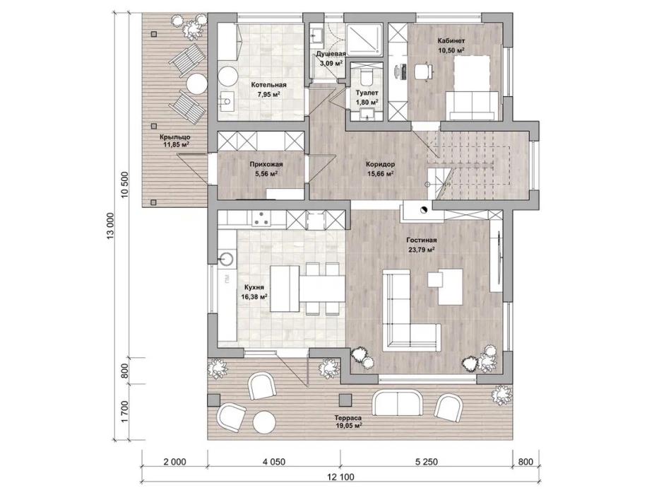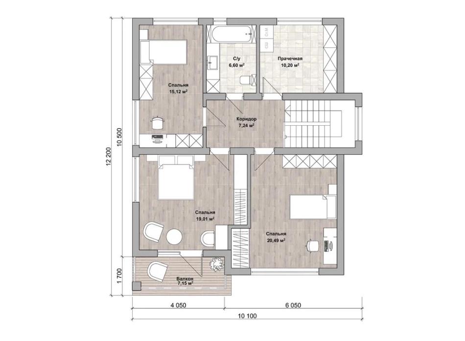 - Габаритные размеры дома 12,2 м х 10,1 м