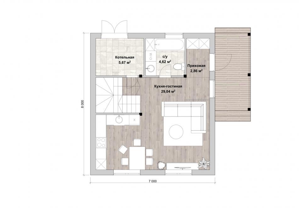 - Габаритные размеры дома 7 м х 8 м