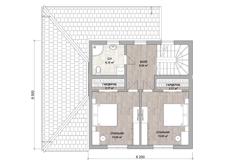 - Габаритные размеры дома 8,2 м х 8,5 м
