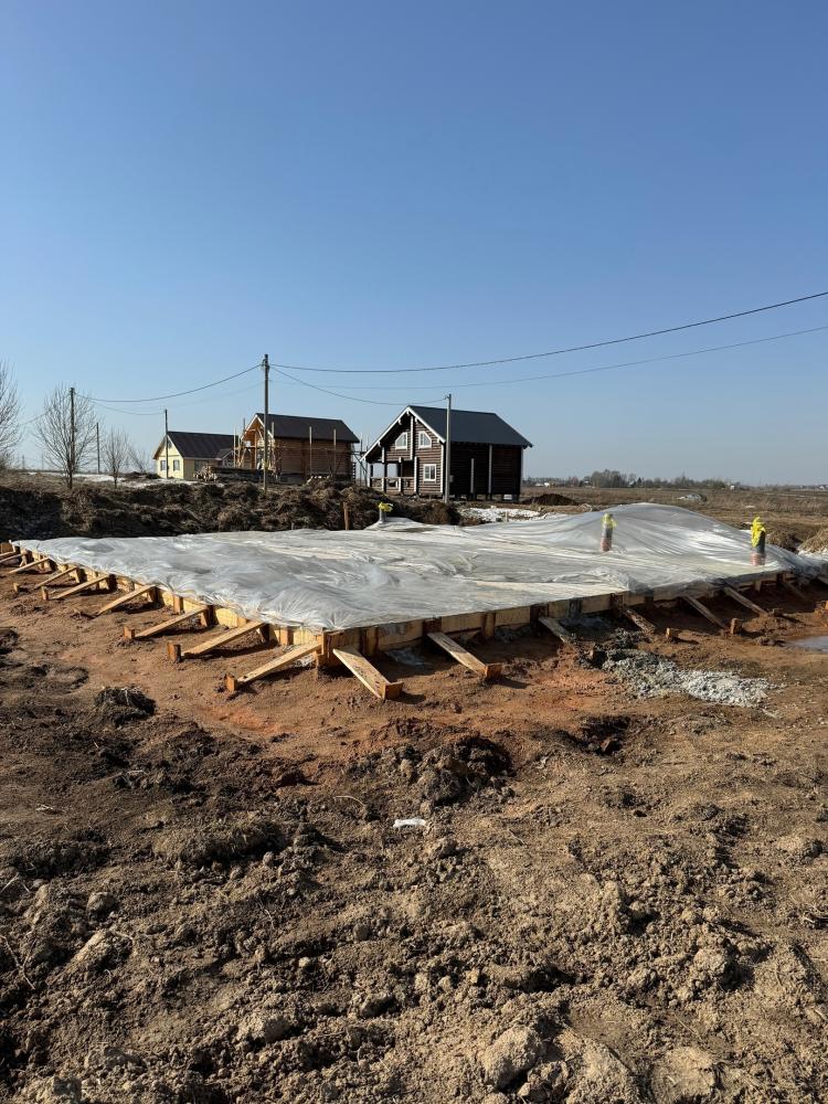 Для двух домов залиты первые в этом году фундаменты. Набирают прочность, ждут, когда бетон станет достаточно сильным, чтобы выдержать вес дома. Это тоже в Вологде.