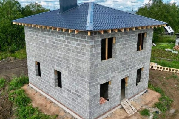Все, как вы любите. 2 этажа, крыша четырёхскатная под металлочерепицей, в основании утеплённая железобетонная плита. Стены из арболитовых блоков от Первый Арболитовый Завод, внешние толщиной 30 см, внутренние по 15 см. Проёмы под панорамные окна, чтобы любоваться садом. Красавчик.