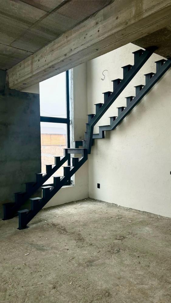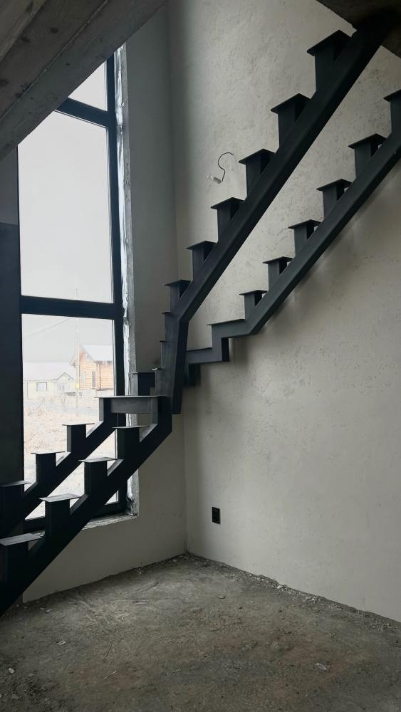 Есть большой шаг вперёд и вверх. Установили лестницу на второй этаж. Да, пока каркас. Но уже занимает свое место, можно продолжать с черновой отделкой.
