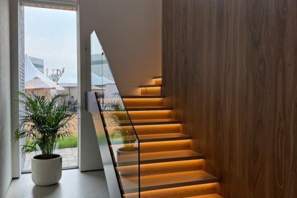 Этот дом умный. Здесь легко управлять температурой, влажностью. Он сам в нужный момент подсвечивает лестницу ради безопасности и красоты. В комнате, где никого нет, свет выключается тоже сам. Светильники помогают регулировать силу света, акцентировать внимание на нужных