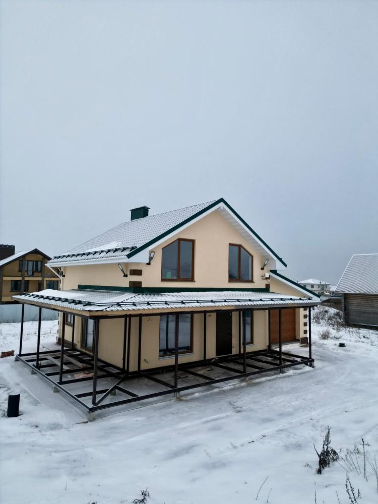 Здесь большая прихожая, просторная кухня-гостиная, 2 спальни, кабинет, ванные комнаты на обоих этажах.Из гаража сделан вход в дом через котельную. Крытая терраса прилично увеличивает площадь гостиной, к которой она примыкает. Заодно закрывает от осадков вход в здание.Дом для семьи стоматологов вырос в Вологде. Нравится проект? Звоните нам. Мы и вам такой построим.
