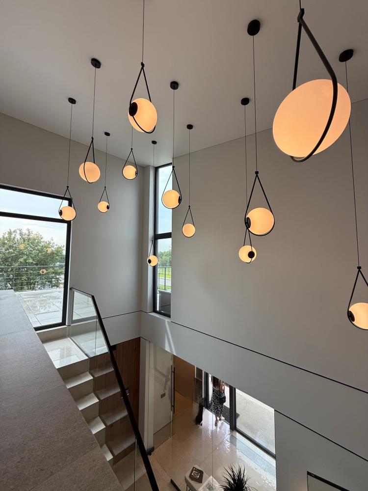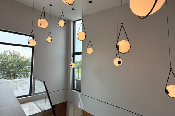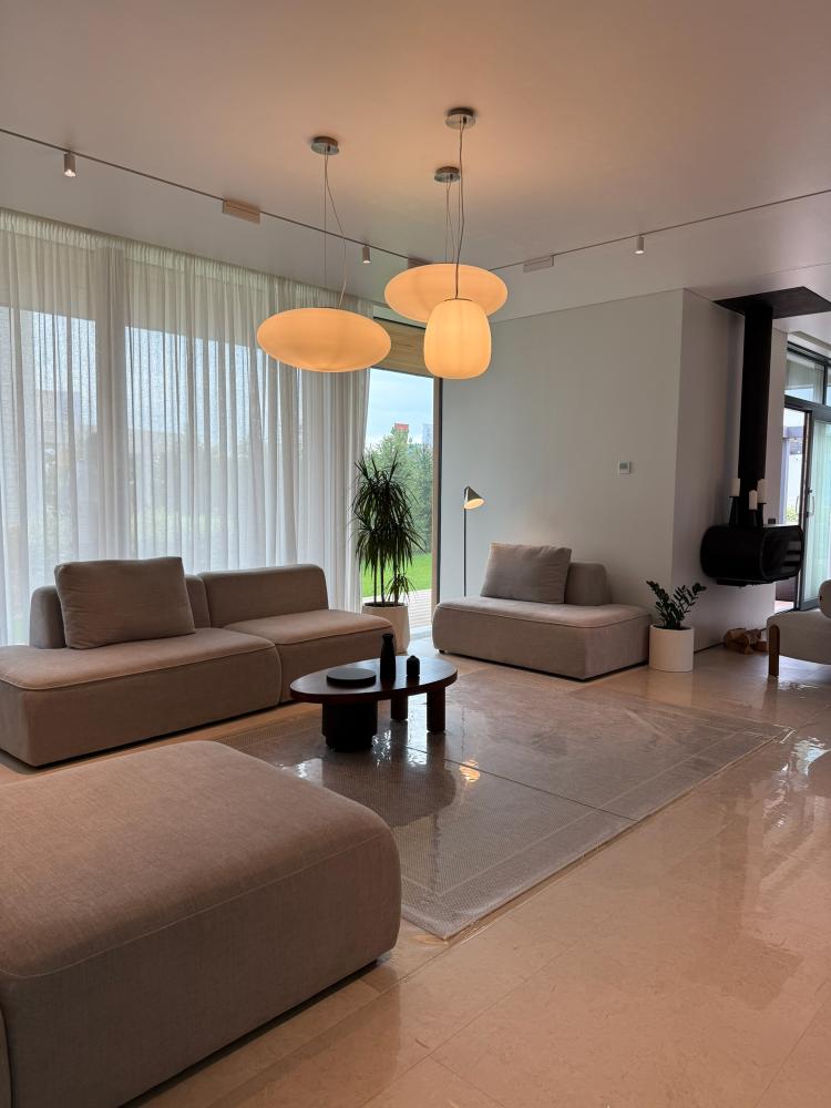 Весь свет с улицы свободно заходит через огромные оконные проёмы, наполняет собой помещения. Делает лёгким снаружи, расширяет пространство изнутри.