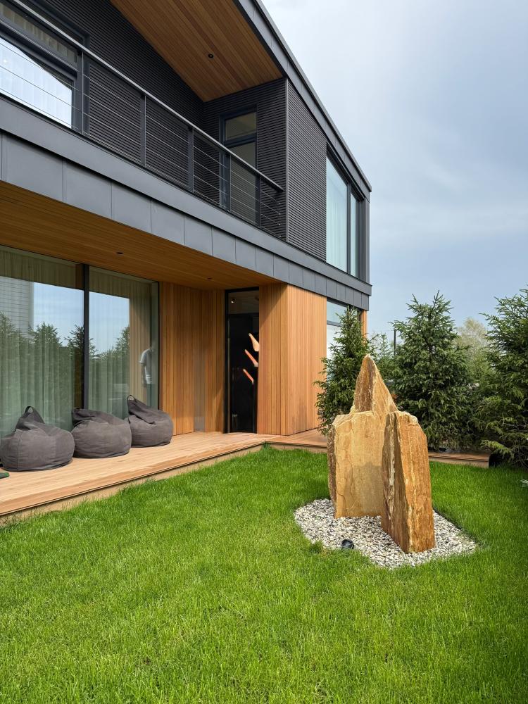Здание современное, подчёркнуто стильное. Вот что отличает его от других домов: