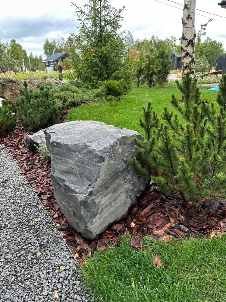 Есть тенденция – сохранение природных участков в том виде, какими они были до стройки. Удалось не задеть ёлочку, пусть растёт. Камень торчит – основание для «альпийской горки». Стоят берёзки группой – шикарно, прямо между ними и кресло-качалка встанет.