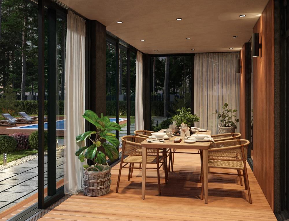 • 2 крытые террасы, одна из них – застеклённая.Комплектация: