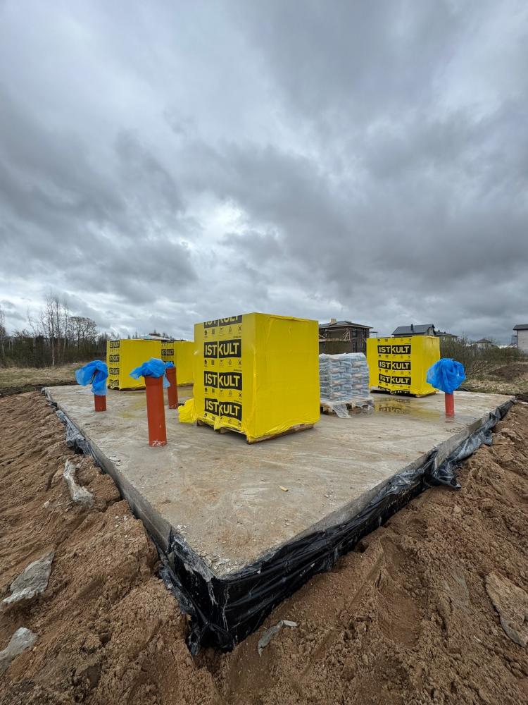 Строим дом по проекту “Грейс”. Фундамент готов, на подходе возведение стен. Материал уже завезли. И вот тот самый обещанный сюрприз.