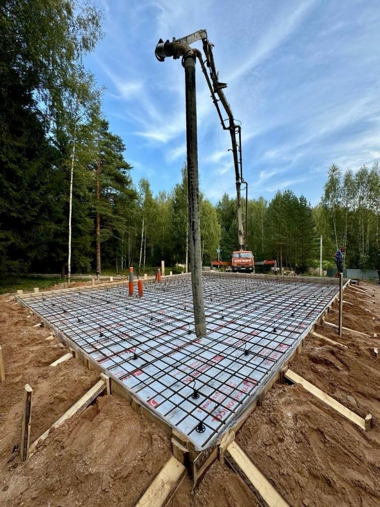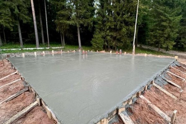 Мы буквально вчера залили фундамент для нового дома. Заказчики выбрали утеплённую железобетонную плиту. Основание будущего здания 8 ×10 метров заложено недалеко от Вологды. Плита набирает силу, созревает.