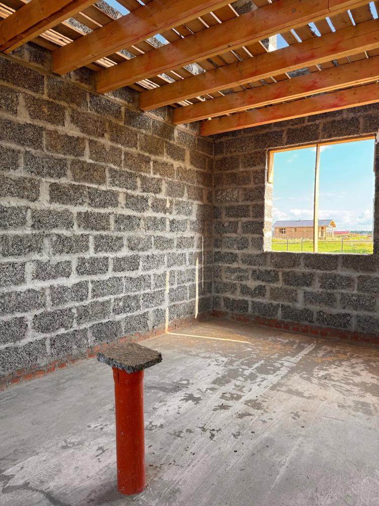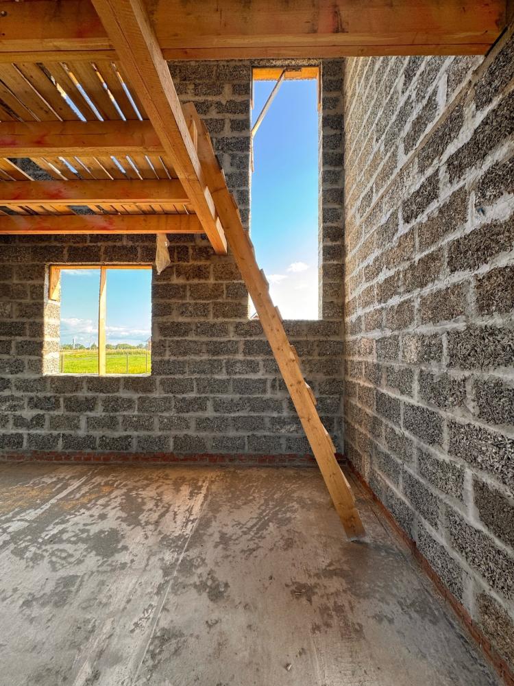 Дом двухэтажный, перекрытия деревянные, фундамент – монолитная железобетонная утеплённая плита. Кровля из металлочерепицы. Готов, голубчик, к началу отделочных работ. В зданиях из арболита усадки ждать не надо.