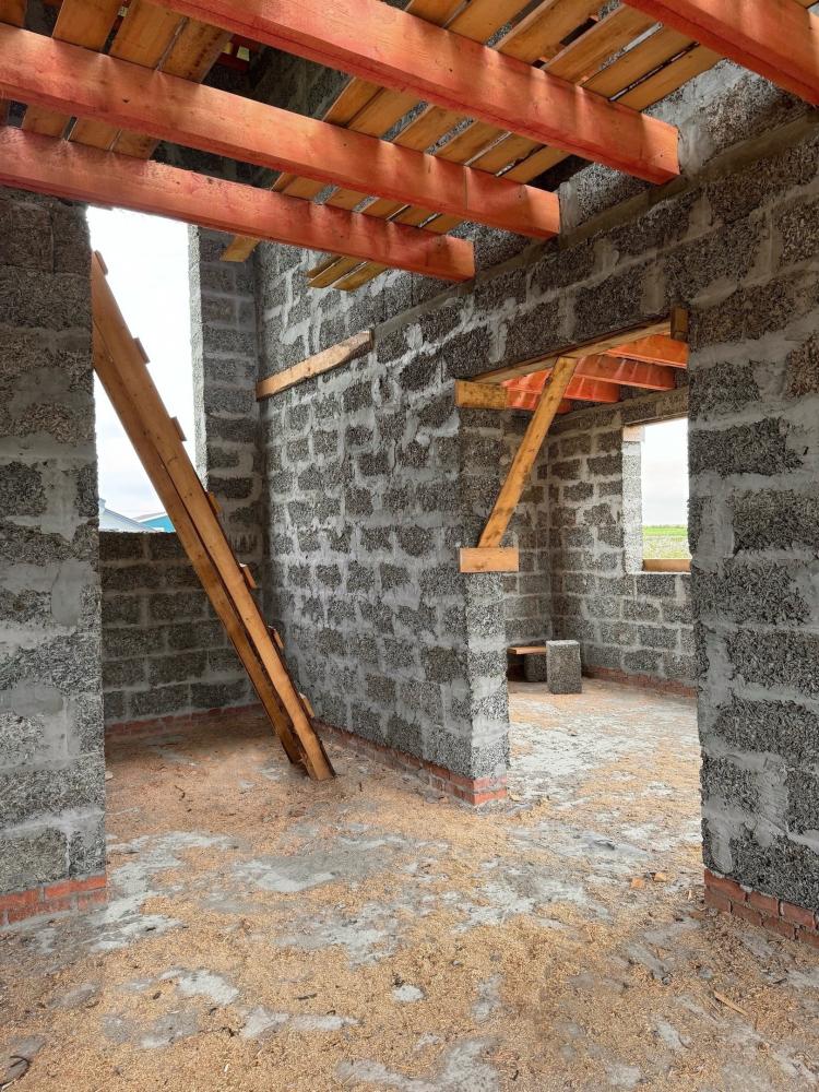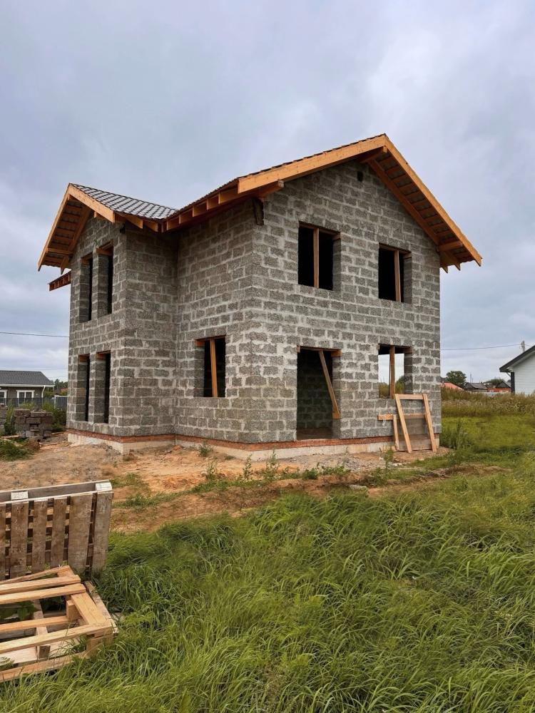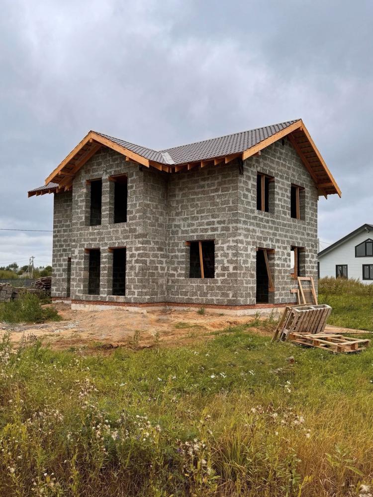Ладно скроен, крепко сложен. В основании надёжная утеплённая железобетонная плита. Панорамные окна стройнят здание. Изнутри будет вид лучше, чем в телевизоре. Перекрытия деревянные на мощных балках. Крыша сложная, издалека будет домик заметен.