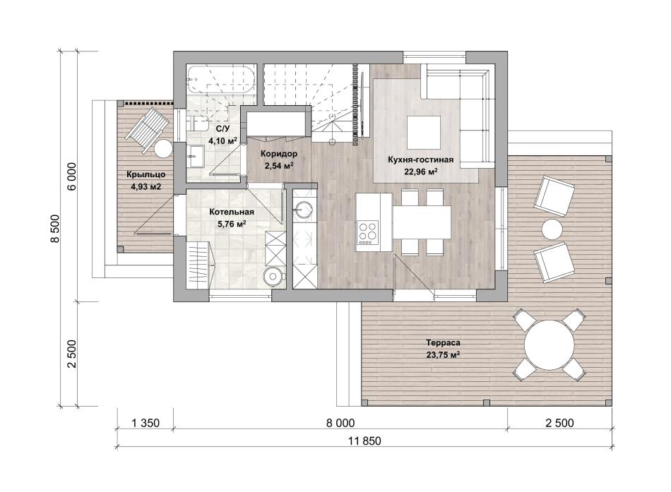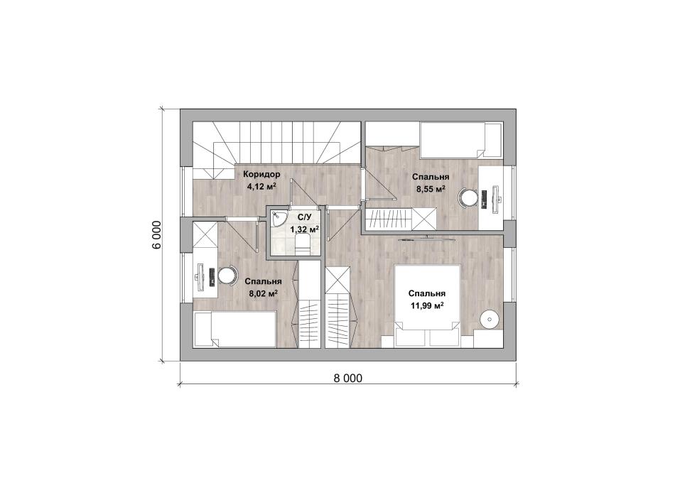 - Габаритные размеры дома 6 м х 8 м