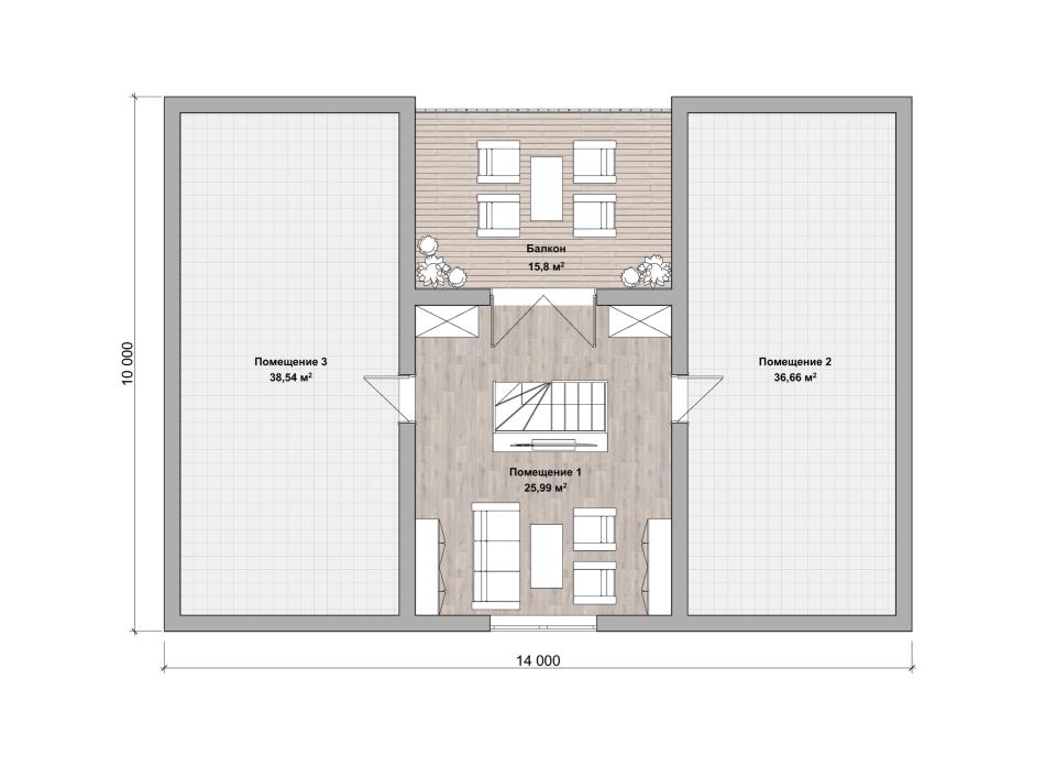 - Габаритные размеры дома 10 м х 14 м