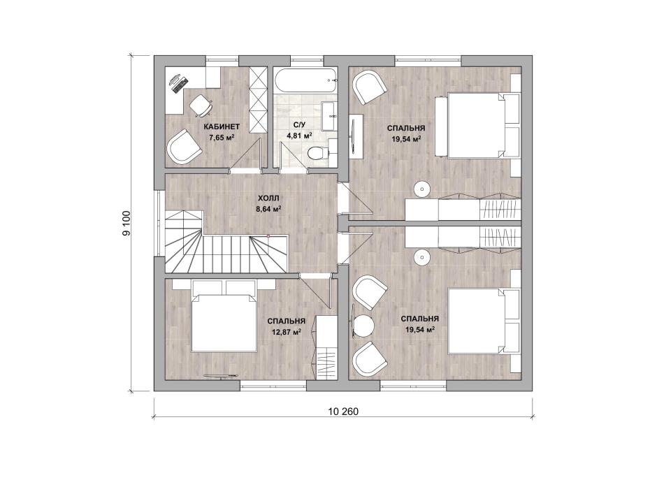 - Габаритные размеры дома 10,26 м х 9,1 м