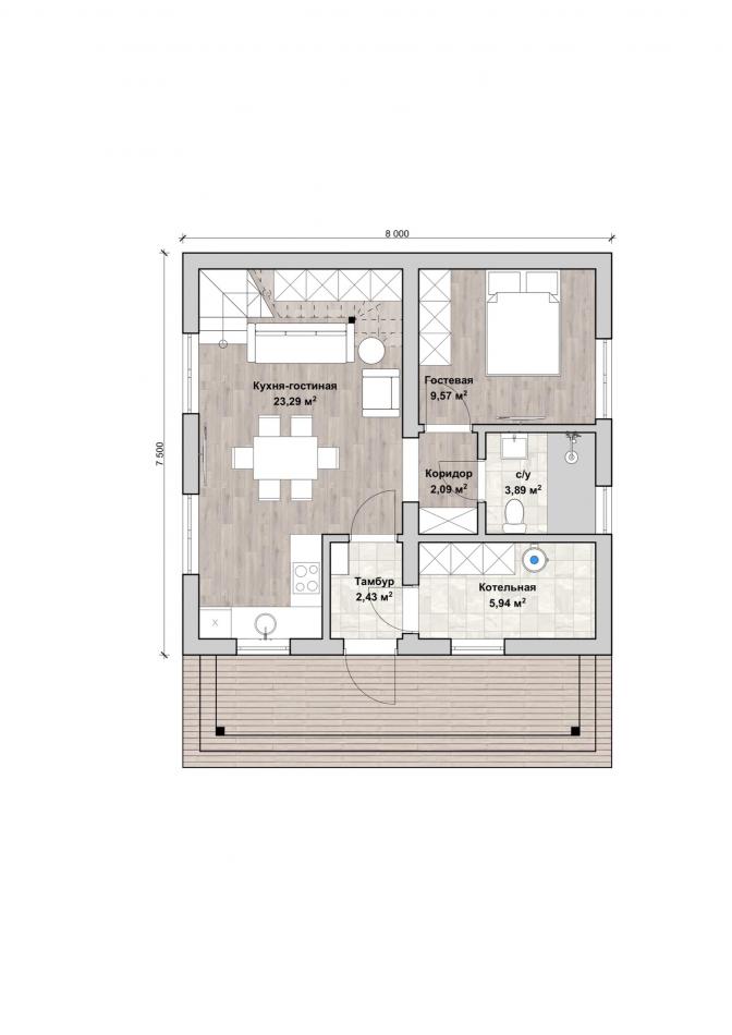 Наши архитекторы разместят дом на земельном участке в соответствии с ориентацией по сторонам света. Будет разработана продуманная для Вас планировка рассчитанная для комфортного проживания.