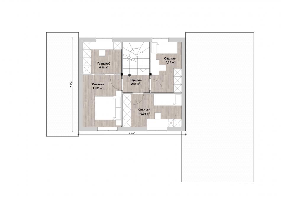 - Габаритные размеры дома: 7 м х 8 м