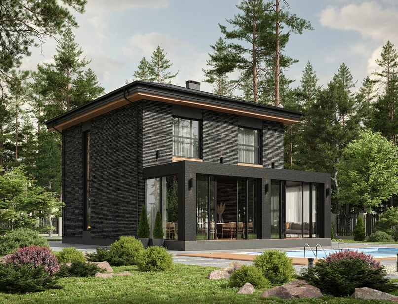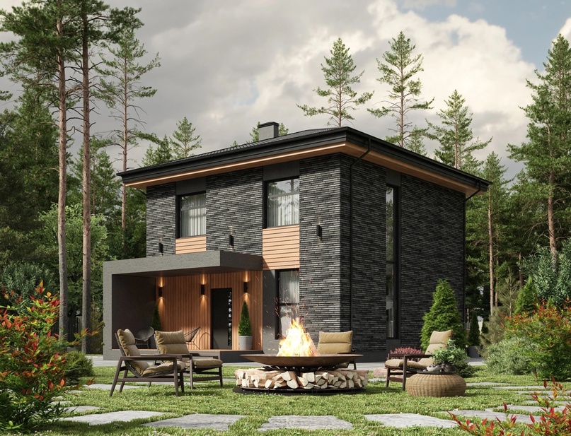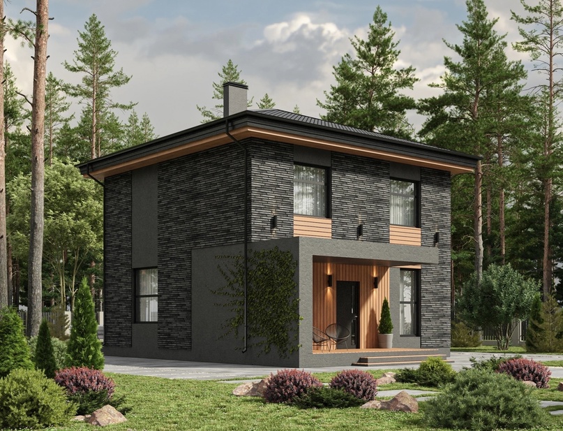 Проект двухэтажного дома для небольшой семьи. Подойдет для загородной жизни, хорошо впишется в городской участок. Здесь соединились простота, комфорт, эргономичность. Гостиная площадью 50 м2 соединена с кухней и столовой, имеет выход на террасу. Панорамные окна наполняют пространство светом и воздухом. На втором этаже расположены 2 просторные спальни и кабинет. Для комфорта жильцов предусмотрены 2 гардеробные и 2 санузла.