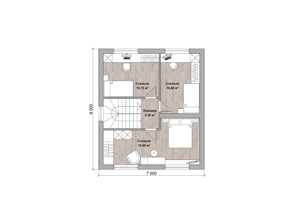 - Габаритные размеры дома 8 м х 7 м