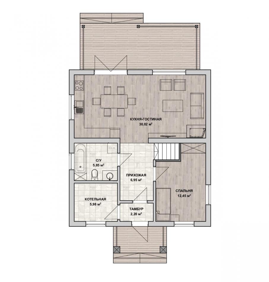 Наши архитекторы разместят дом на земельном участке в соответствии с ориентацией по сторонам света. Будет разработана продуманная для Вас планировка рассчитанная для комфортного проживания.