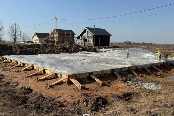 Для двух домов залиты первые в этом году фундаменты. Набирают прочность, ждут, когда бетон станет достаточно сильным, чтобы выдержать вес дома. Это тоже в Вологде.