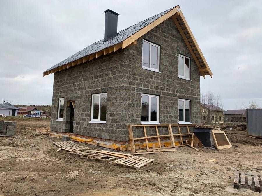 Сегодня мы поговорим о строительстве дома в Ильинском. Площадь этого дома 116 м2, в конце марта возвели коробку. Совсем не давно установили окна и завершили черновую штукатурку стен.