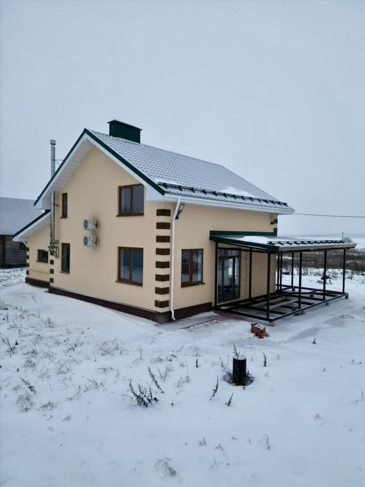 Здесь большая прихожая, просторная кухня-гостиная, 2 спальни, кабинет, ванные комнаты на обоих этажах.Из гаража сделан вход в дом через котельную. Крытая терраса прилично увеличивает площадь гостиной, к которой она примыкает. Заодно закрывает от осадков вход в здание.Дом для семьи стоматологов вырос в Вологде. Нравится проект? Звоните нам. Мы и вам такой построим.