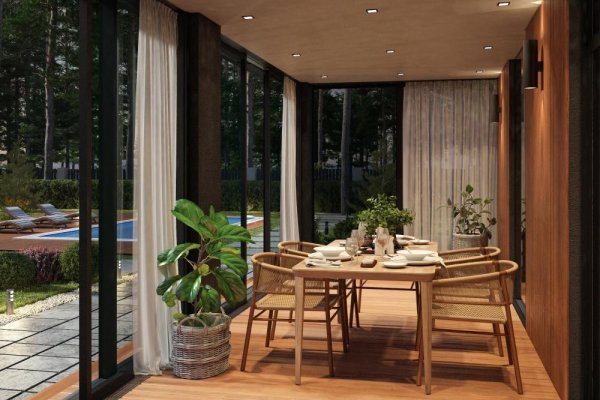 • 2 крытые террасы, одна из них – застеклённая.Комплектация:
