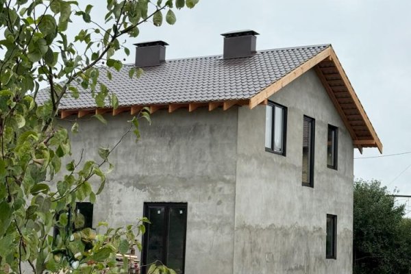 На фото вы видите готовый, оштукатуренный конструктив. Рядом то, как дом будет выглядеть после завершения всех работ. Внешний вид здания будет совсем другим. Красивая картинка может подождать. Зато людям ждать не надо, если всё готово внутри. Заезжай и живи, а марафет снаружи наведём позже.
