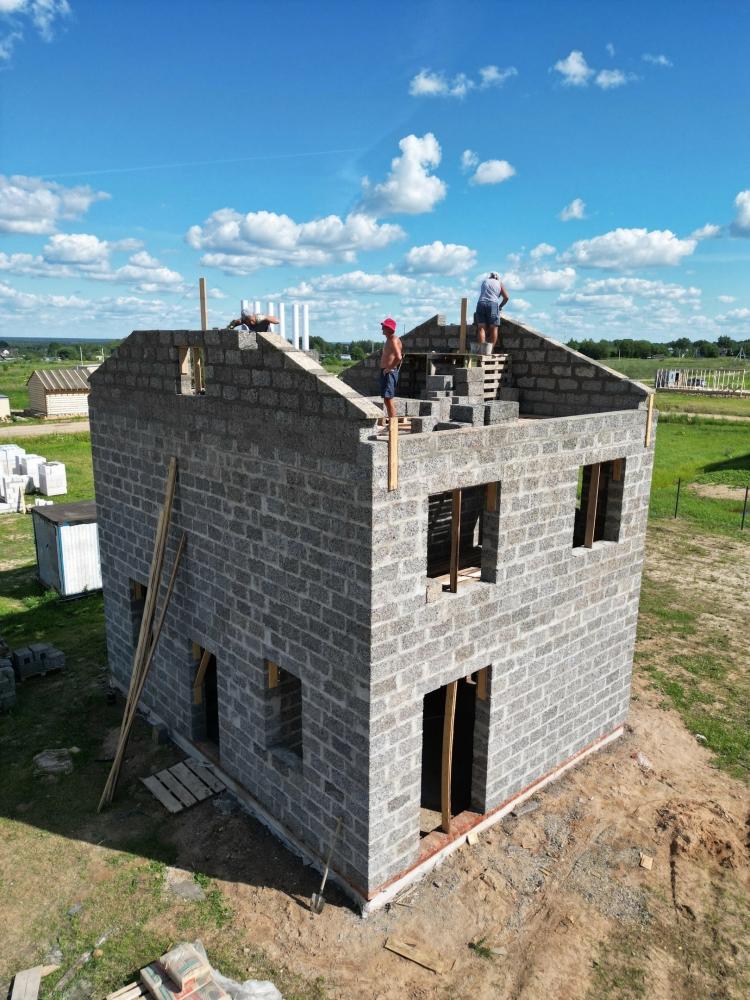 Арболит практически не даёт усадку. Благодаря этому качеству материала между вторым и третьим этапами время не теряется. На возведение дома под чистовую отделку у нас уходит в среднем 3 месяца.