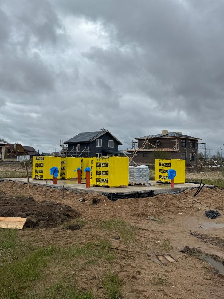 Строим дом по проекту “Грейс”. Фундамент готов, на подходе возведение стен. Материал уже завезли. И вот тот самый обещанный сюрприз.