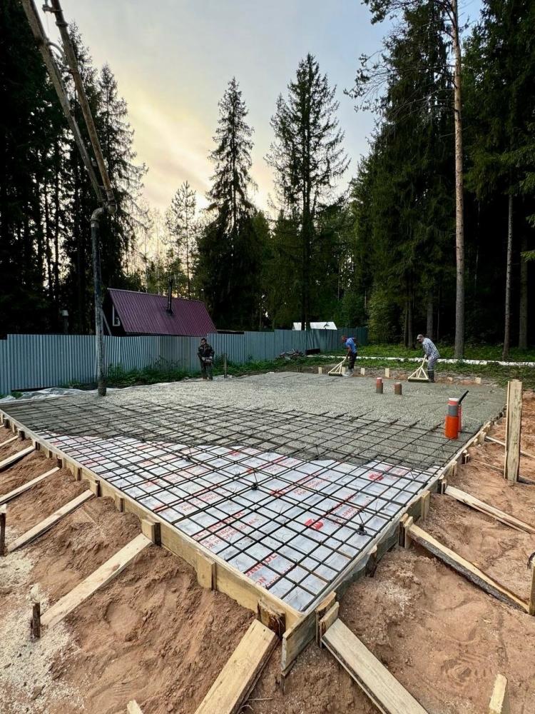 Мы буквально вчера залили фундамент для нового дома. Заказчики выбрали утеплённую железобетонную плиту. Основание будущего здания 8 ×10 метров заложено недалеко от Вологды. Плита набирает силу, созревает.