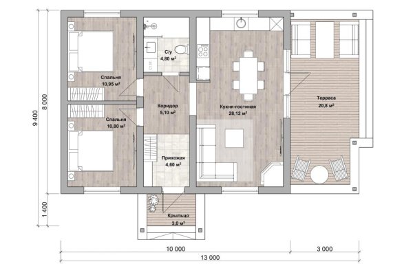 Площадь дома 80 м².