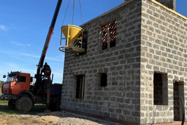 На объекте в Вологде достраивается конструктив. Приспособление на фото весёленького солнечного цвета и есть колокольчик. Ёмкость конической формы используется для заливки небольшого объёма бетона. Поднимается краном на необходимую высоту, и раствор попадает в намеченное место.